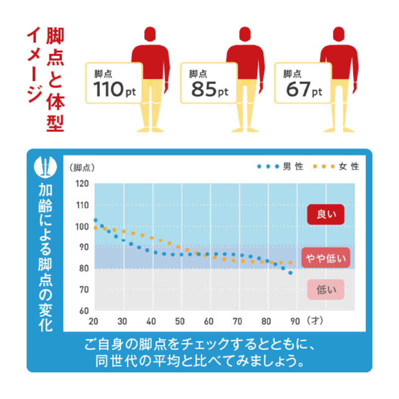 ●脚点表示で足腰の健康度をチェック(18才~99才対象、50~150Pt)