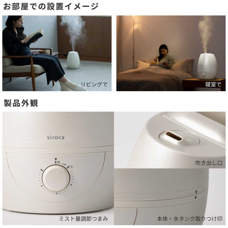 SIROCA 加湿器 超音波式 木造6畳 鉄筋10畳 シルキーホワイト SD-C213W