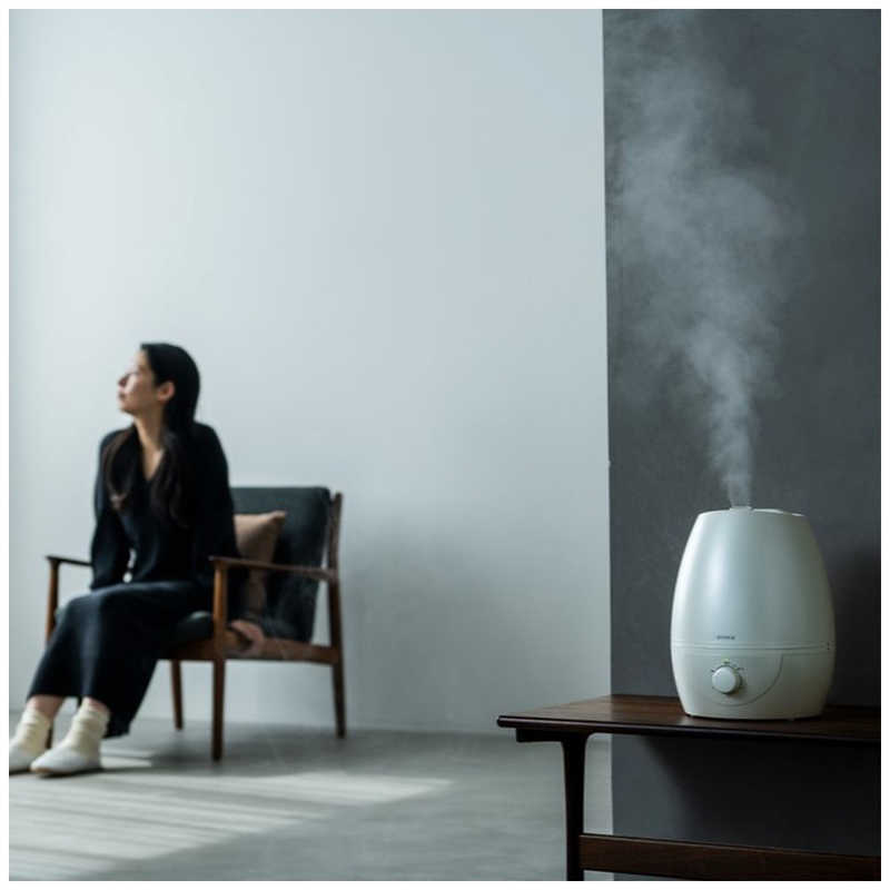 シロカの5L加湿器は水に超音波を当てて振動させることでミストを発生させる「超音波式」。