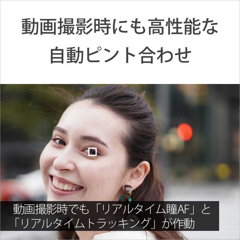 動画撮影時の「リアルタイム瞳AF(人物)」や、液晶モニター画面をタッチすることで、ピント合わせや被写体を追尾させることができる「リアルタイムトラッキング」にも対応し、シーンを選ばず主役を際立たせることが可能です。