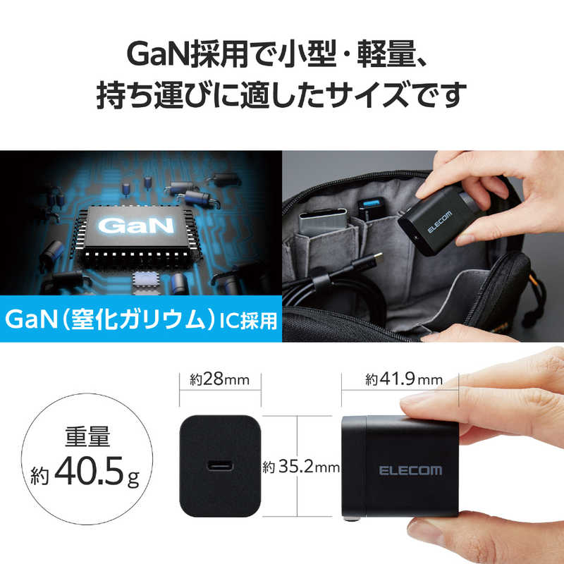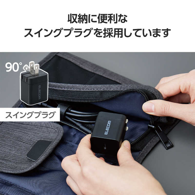 ■未使用時はコンセントプラグを折りたたんで充電器本体に収納可能です。スッキリとコンパクトに収納できるので、持ち運びにも便利です。