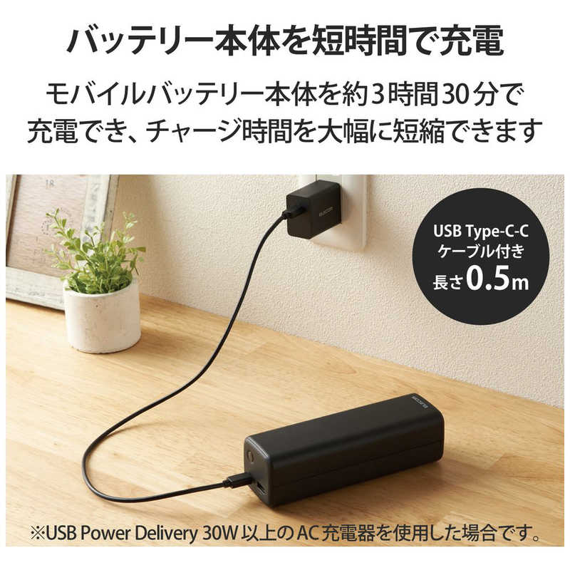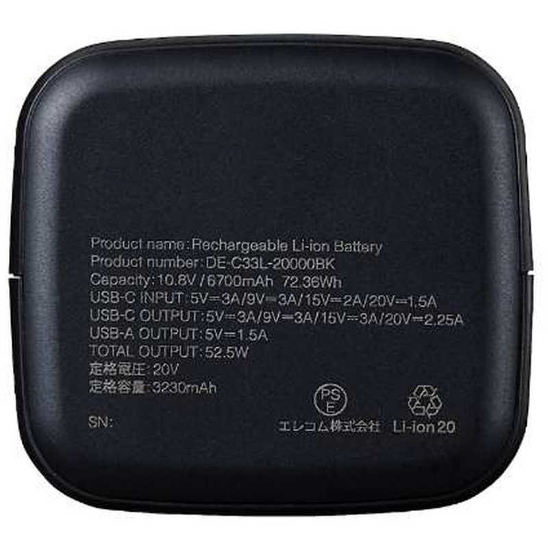 エレコム ELECOM USB PowerDelivery認証モバイルバッテリー (20100mAh/52.5W) DE-C33L-20000BK