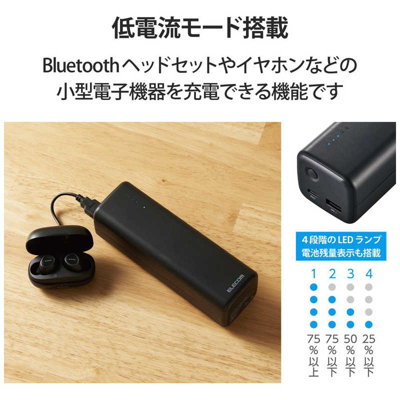 ■Bluetoothヘッドセット・イヤホンなどの充電電流の小さい小型電子機器を最適な電流で充電することができる低電流モードを搭載。