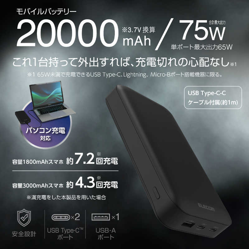 ■電池定格容量:3.6V/20000mAh 72.0Wh