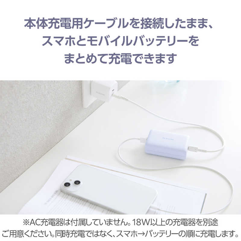 ■本体充電用ケーブルを接続したままで、スマートフォンとモバイルバッテリーを充電できる“まとめて充電”に対応しています。