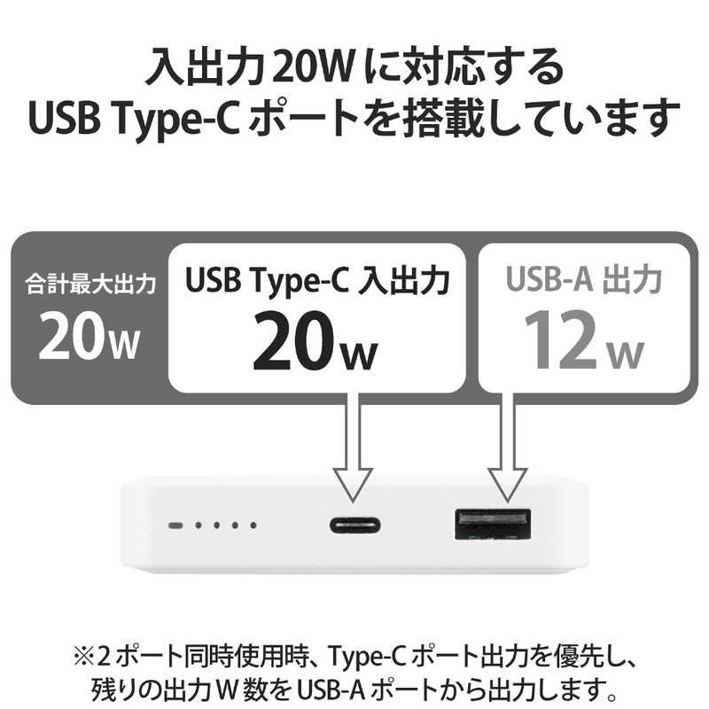 ■USB-Aポート、USB Type-C(TM)(USB-C(TM))ポートをそれぞれ1ポートずつ搭載しており、2ポート合計20Wの出力が可能な高出力モデルです。