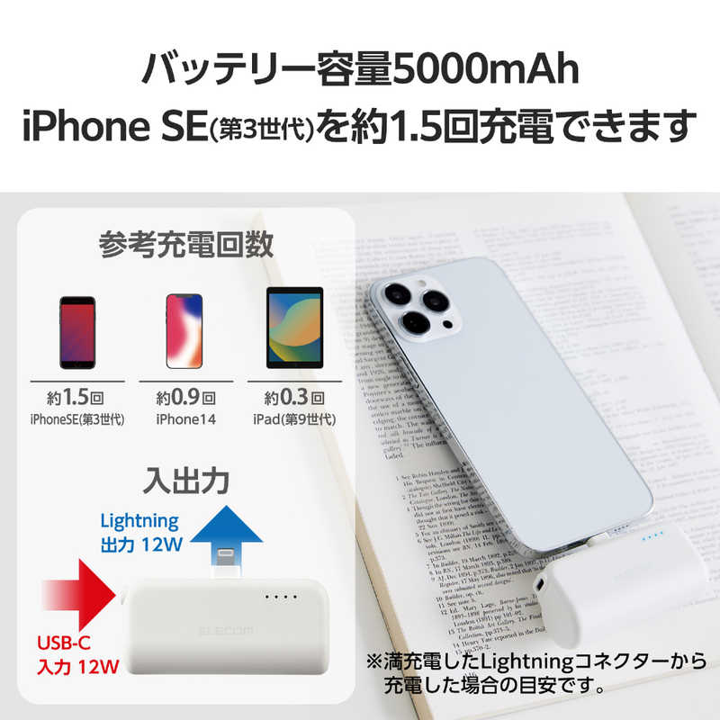 ■ 容量5000mAhでiPhone SE(第3世代)を約1.5回、iPhone 14を約0.9回充電可能