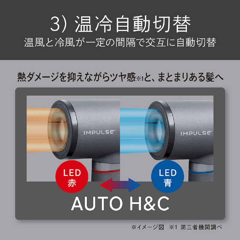 ●LEDライト:HOT(レッド)、AUTO H&C(レッド点滅)、SCALP(グリーン)、COOL(ブルー)