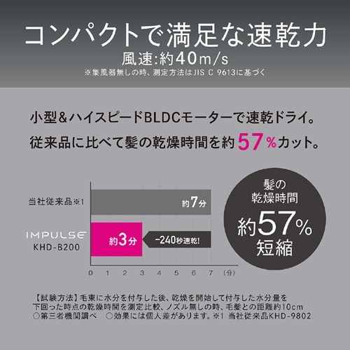 ●BLDCモーター搭載で地肌にもしっかり風が届く、高風圧タイプのマイナスイオンドライヤ