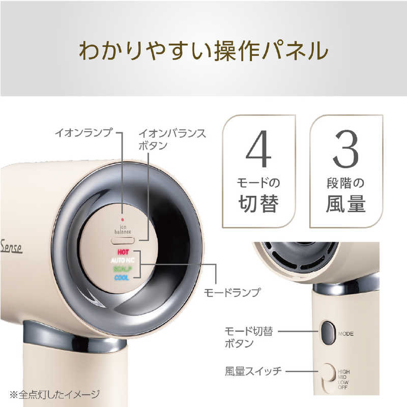 ●モード切替:HOT、COOL、スカルプ、温冷自動切替