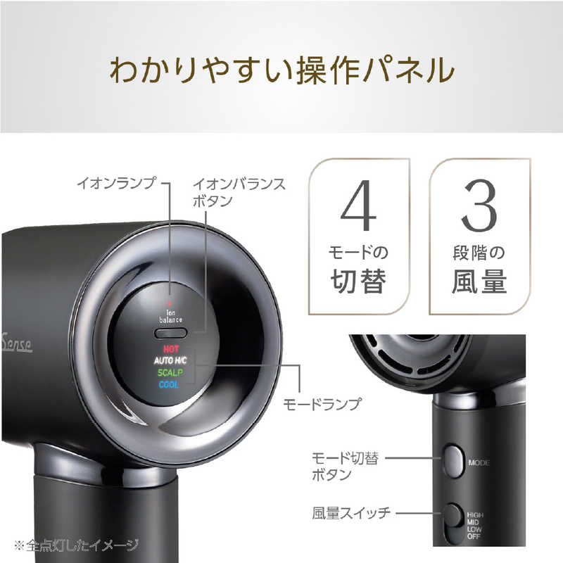 ●モード切替:HOT、COOL、スカルプ、温冷自動切替