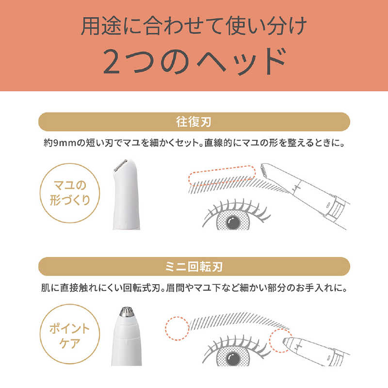 ●肌にやさしいミニ回転刃と、直線的な形に整えやすいトリマー刃。