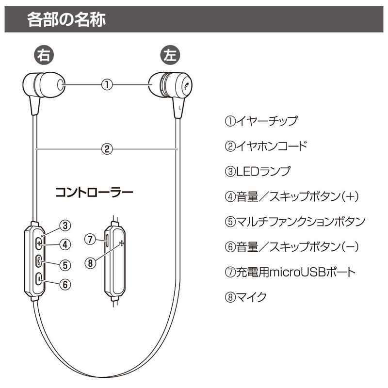 ● 付属品:専用充電コード、イヤーチップ(S、M、L ※Mは本体に装着済み)、保証書、取扱説明書