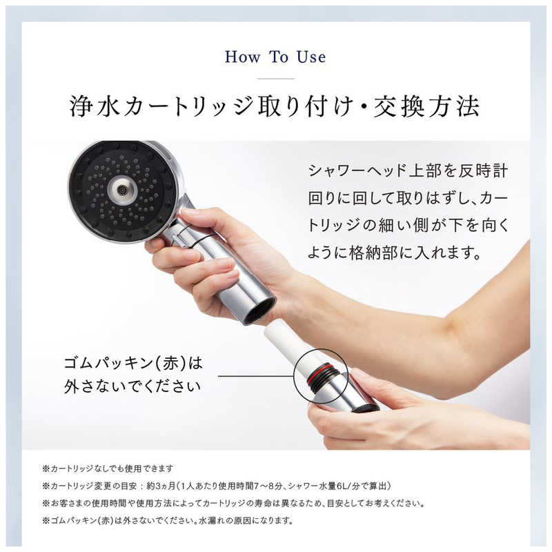 ※交換時期を超えて使用すると、カートリッジのフィルターが詰まってシャワーの流量が落ちる可能性があります。