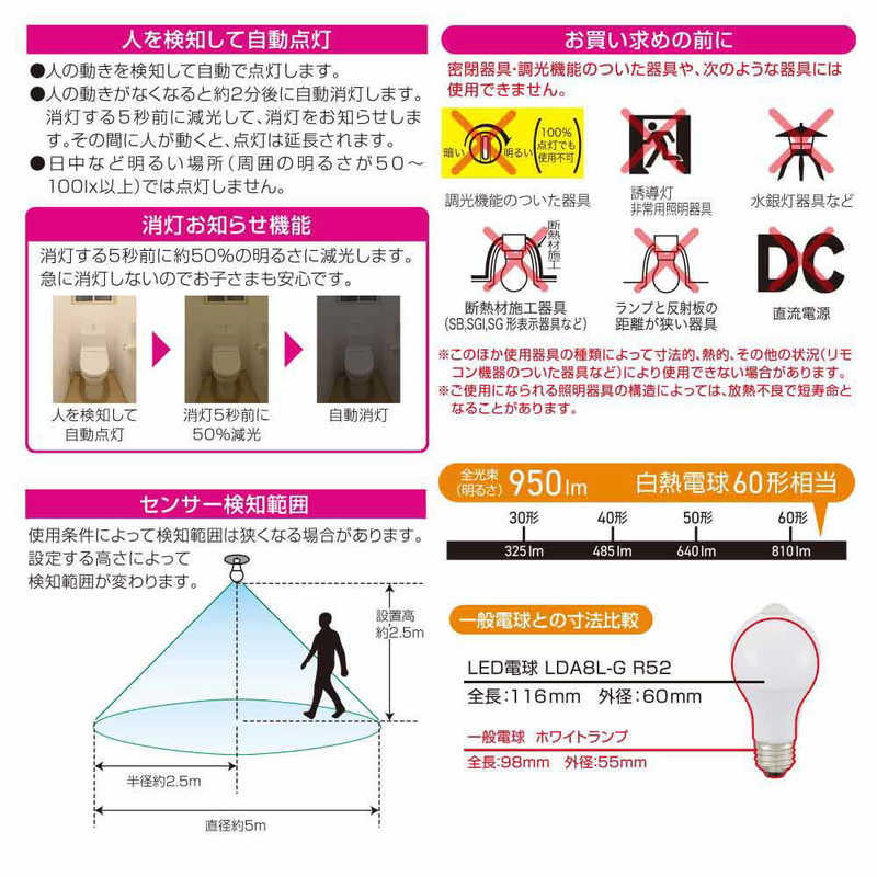 ![オーム電機 OHM LED電球E2660形相当人感明暗センサー付き電球色 [E26 /一般電球形 /60W相当 /電球色 /1個] LDA8L-GR52](/html/upload/save_image/0111184339_696370cb2376c.jpg)