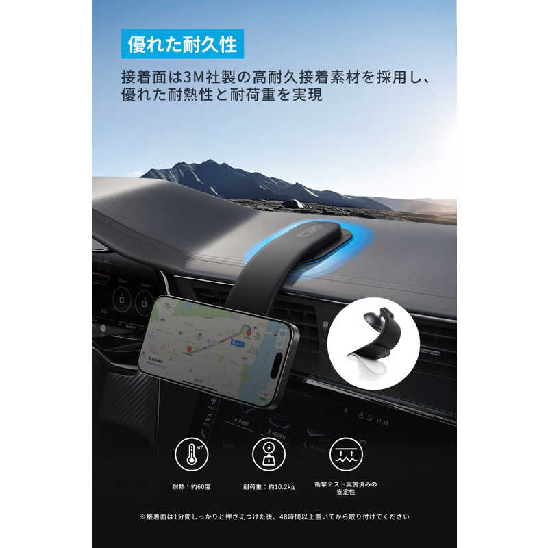 接着面には3M社製の高耐久接着素材を採用し、優れた耐熱と耐荷重を実現。万一の取り外しの際にも跡が残りにくく、綺麗に剥がすことが可能です。