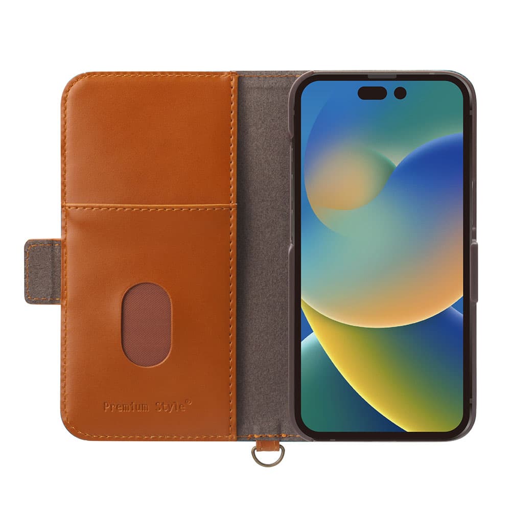 風合いの良い上質なPUレザー素材を使用した2022年 iPhone 6.1inch トリプルカメラ用 フリップカバーです。