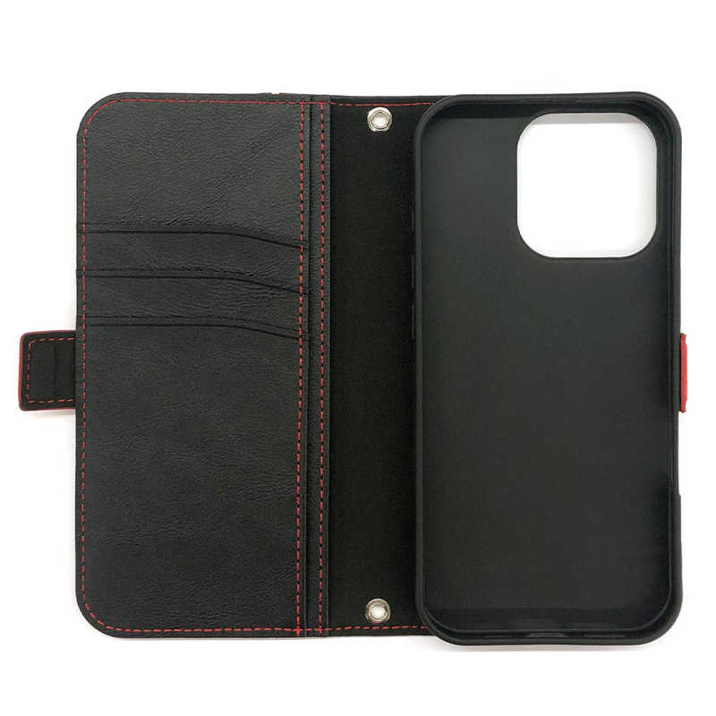 エアージェイ air-j iPhone 16 Pro用MAGSAFE対応 手帳型PBケース カーボン/レッドライン AC-P24P-PB CBR