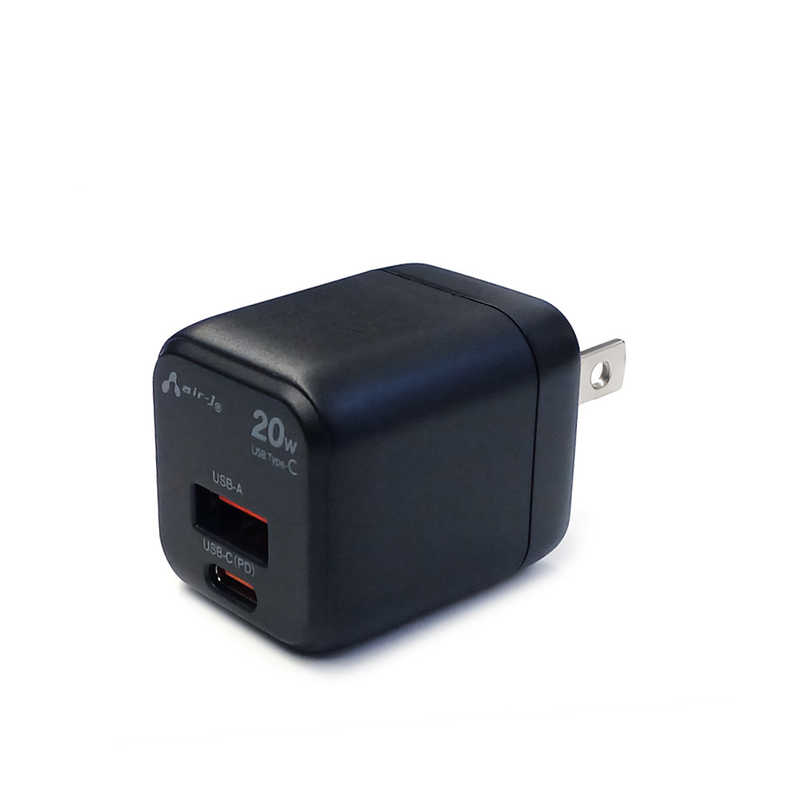 エアージェイ air-j PD20W対応 Type-C1ポート/USB1ポート AC充電器 ブラック AKJ-PDC20 BK