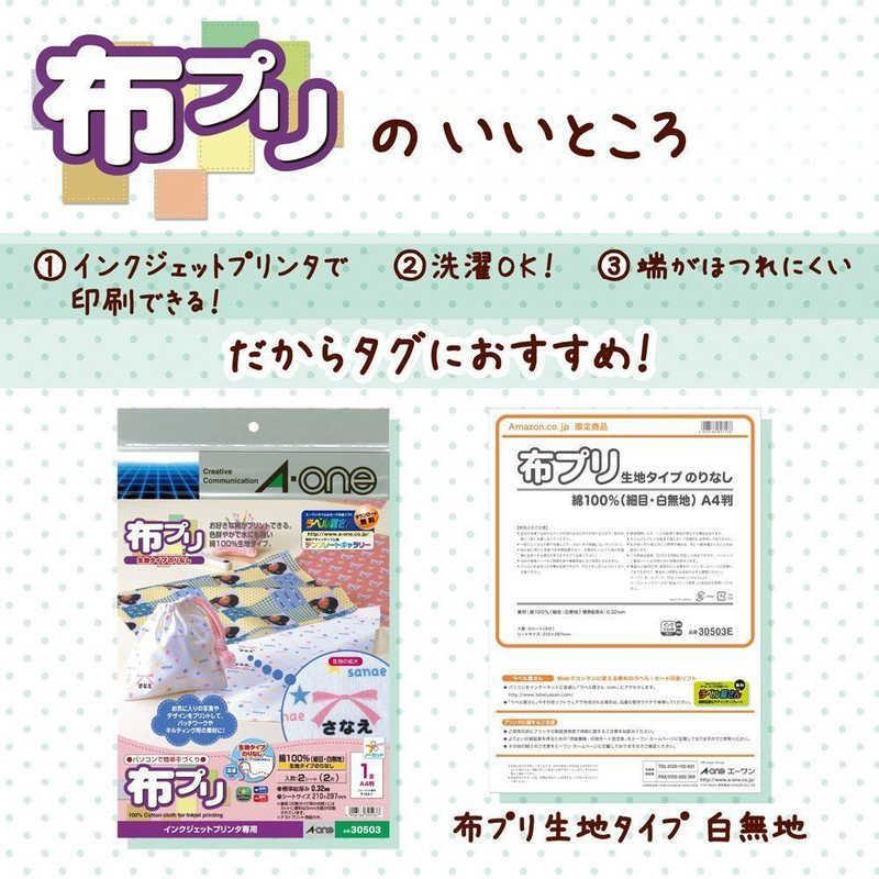 A-ONE エーワン 布プリ 生地タイプ のりなし A4判 ノーカット 2シート入り A-ONE.30503