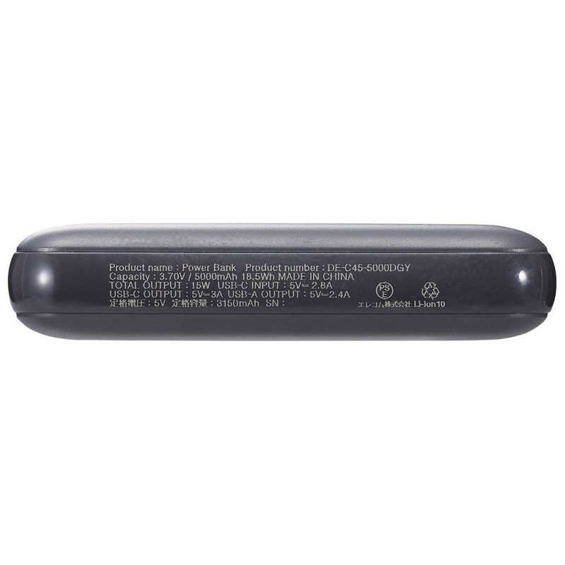 エレコム ELECOM 薄型コンパクトモバイルバッテリー(5000mAh/3A/C×1+A×1) ダークグレー DE-C45-5000DGY