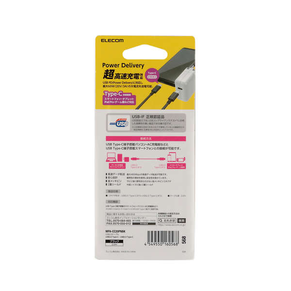 エレコム ELECOM USB2.0ケーブル C-C PD対応 2.0m ブラック MPA-CC20PNBK