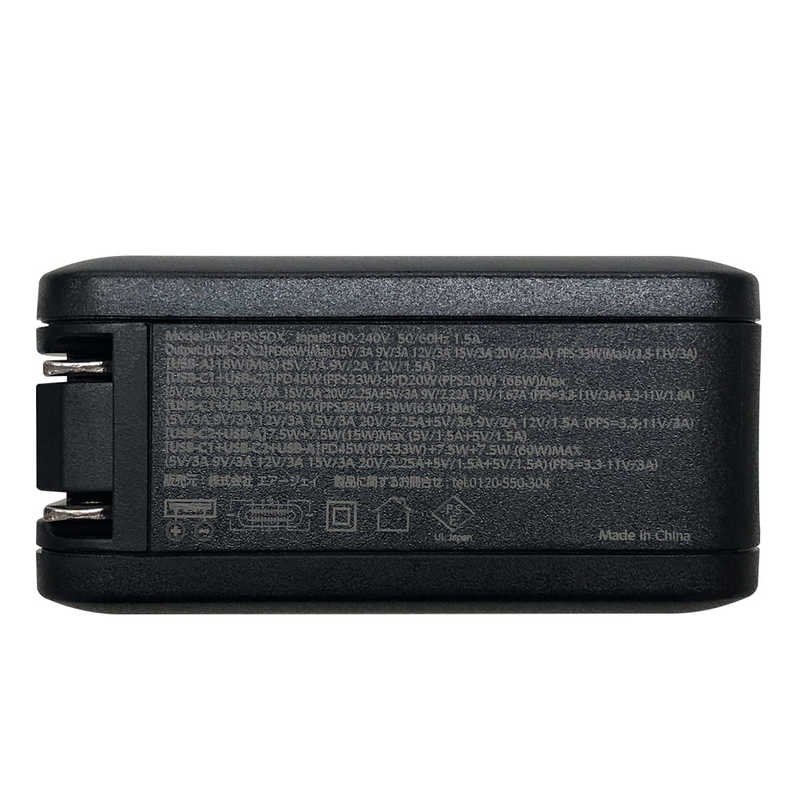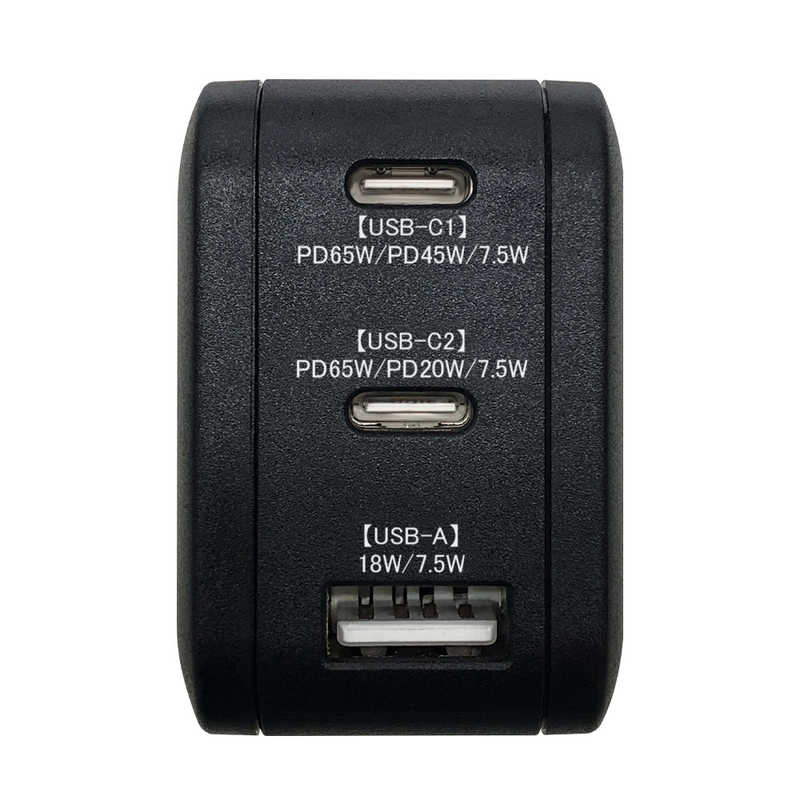 エアージェイ air-j PD65W対応 Type-C2ポート/USB1ポート 急速パワフル充電器+C to Cケーブル 1m ブラック AKJ-PD65DX BK