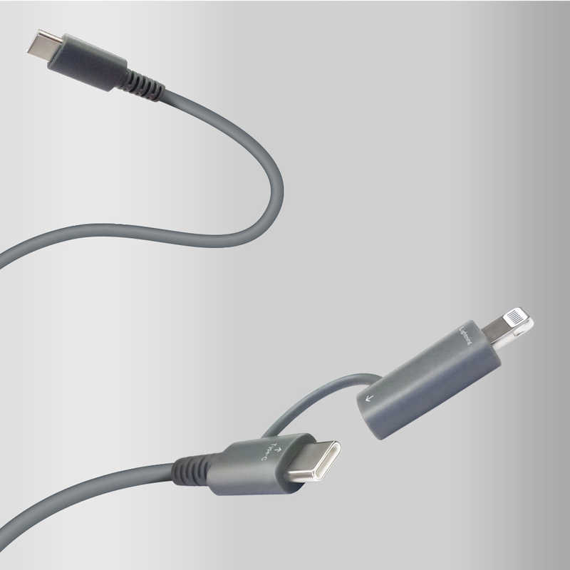 エアージェイ air-j ふわふわ 2in1ケーブル(2.0m) Lightning変換アダプター付 USB Type-Cケーブル グレー CCJ-CL2M GY