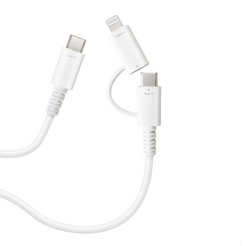 エアージェイ air-j ふわふわ 2in1ケーブル(2.0m) Lightning変換アダプター付 USB Type-Cケーブル ホワイト CCJ-CL2M WH