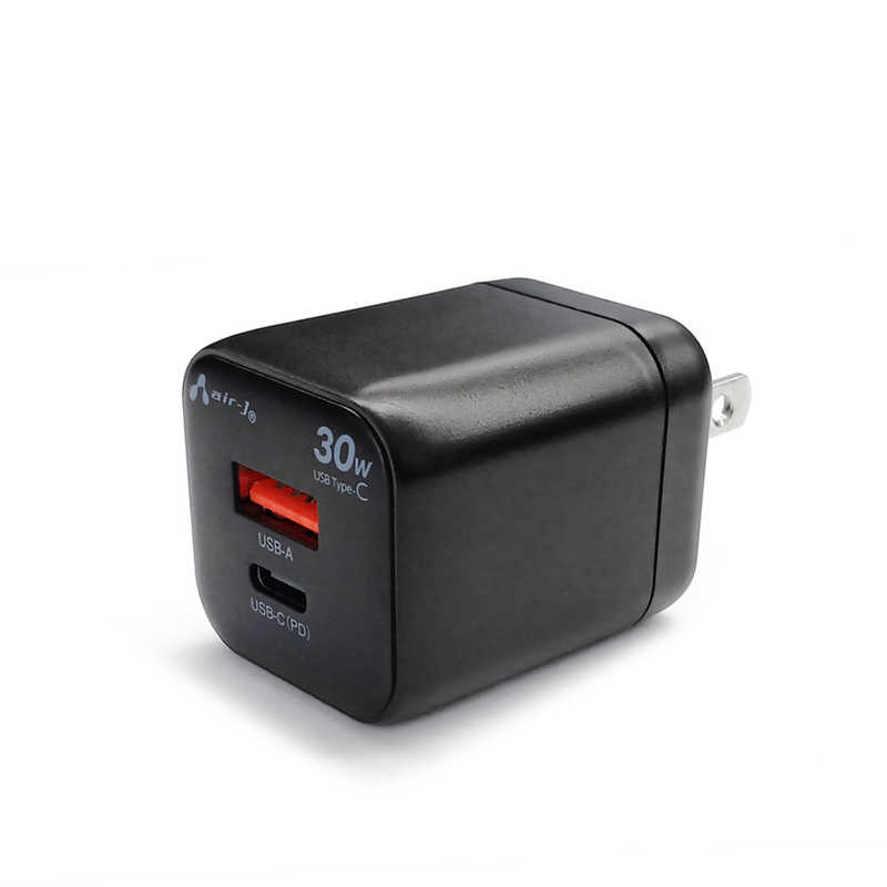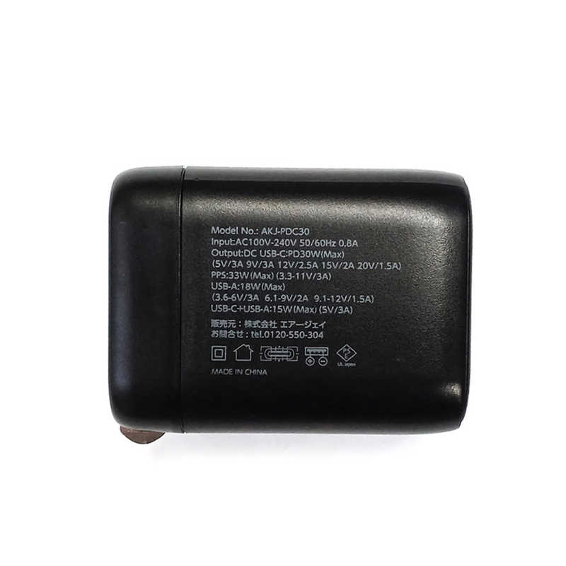 エアージェイ air-j PD30W対応 Type-C1ポート/USB1ポート AC充電器 ブラック AKJ-PDC30 BK