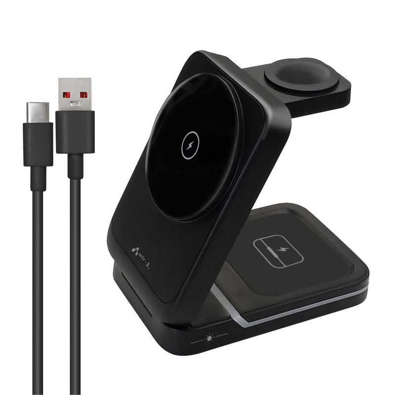 エアージェイ air-j コンパクト 3IN1 ワイヤレス充電ステーション ブラック AWJ-3MG3 BK