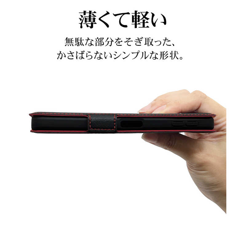 ラスタバナナ RastaBanana AQUOS sense8(SH-54D/SHG11)用薄型手帳ケース サイドマグネット カード3枚 ブラック×レッド 7773AS8BSMBKR