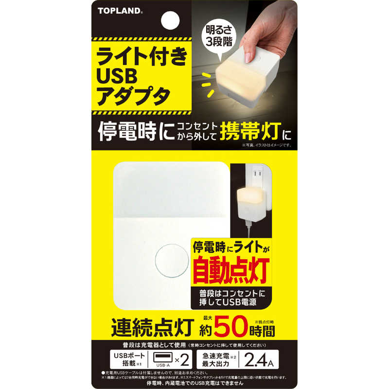 トップランド ライト付きUSBアダプタ ホワイト CHAC24L-WT