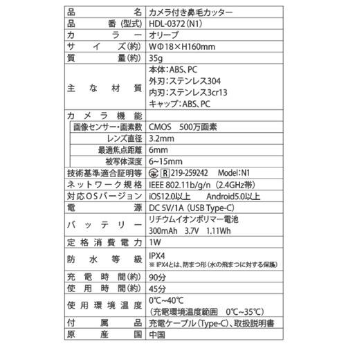 ヒロコーポレーション HIRO カメラ付き鼻毛カッター カメラで確認しながらカット HDL-0372