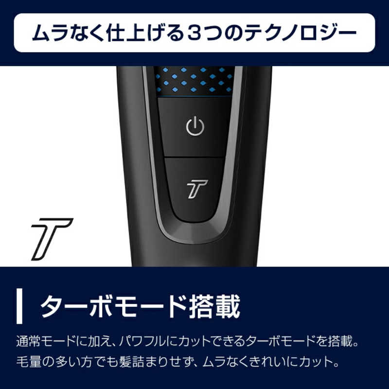 ●ターボモード搭載で髪詰まりせずムラなくきれいにカット。