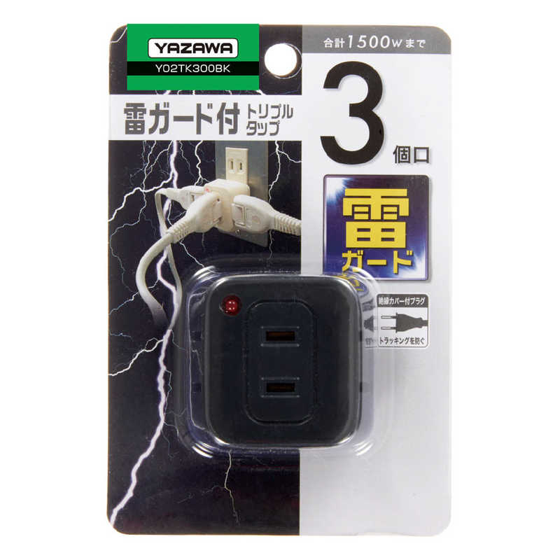 ヤザワ YAZAWA トリプルタップ ブラック 直挿し 3個口 スイッチ無 Y02TK300BK