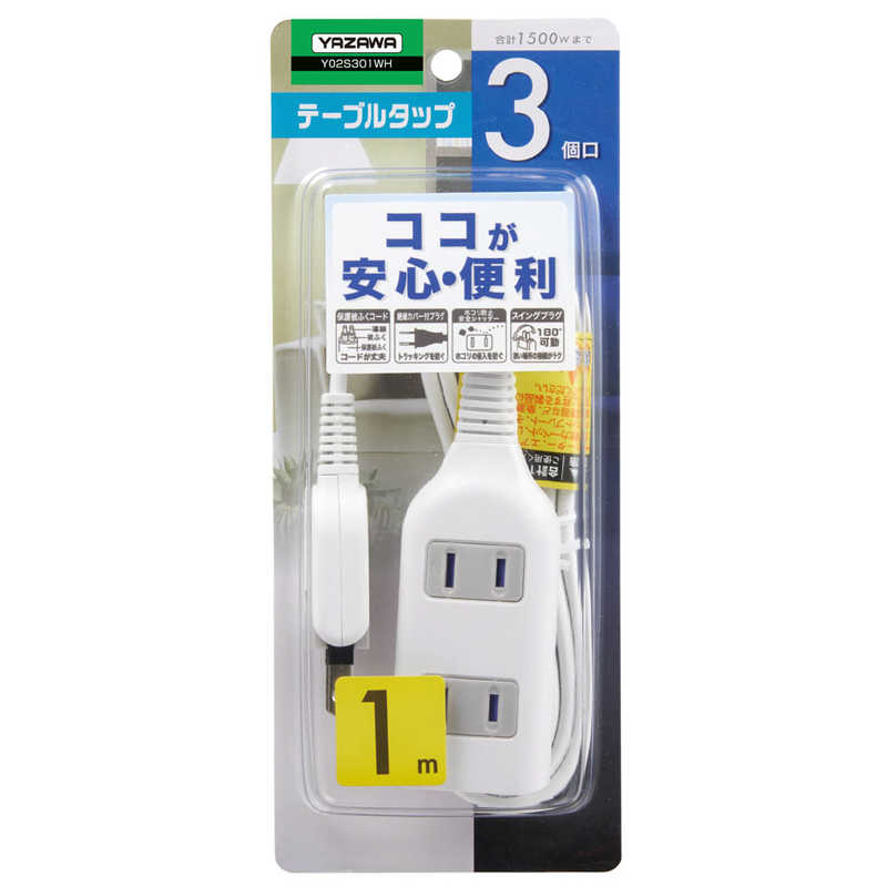 ヤザワ YAZAWA 耐トラ付タップ 3個口 1m 白 Y02S301WH