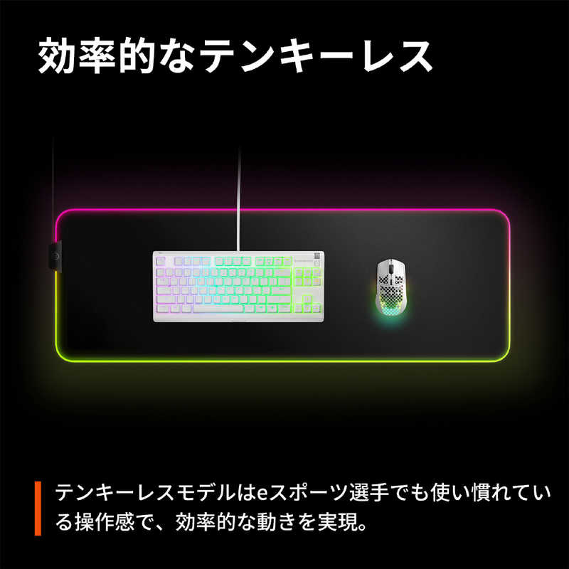 プロが TKL キーボードを選ぶのは、テンキーパッドが取り除かれたことにより、マウスを大きくスワイプするためのスペースがさらに生まれ、ゲーミング中のエルゴノミクスが向上するからです。