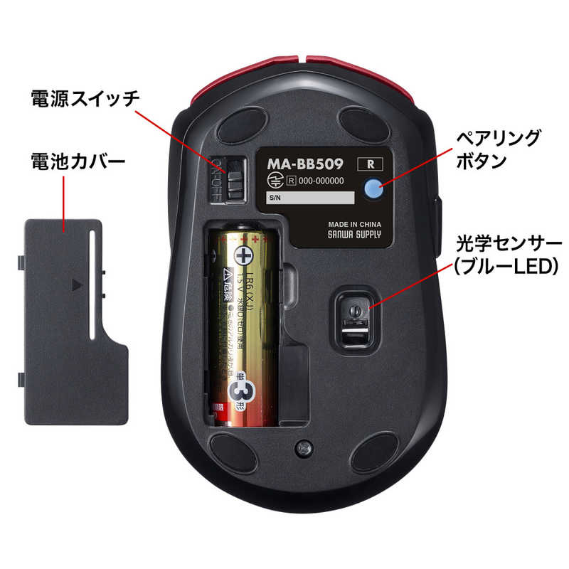 サンワサプライ Sanwa Supply BluetoothブルーLEDマウス(5ボタン) レッド MA-BB509R