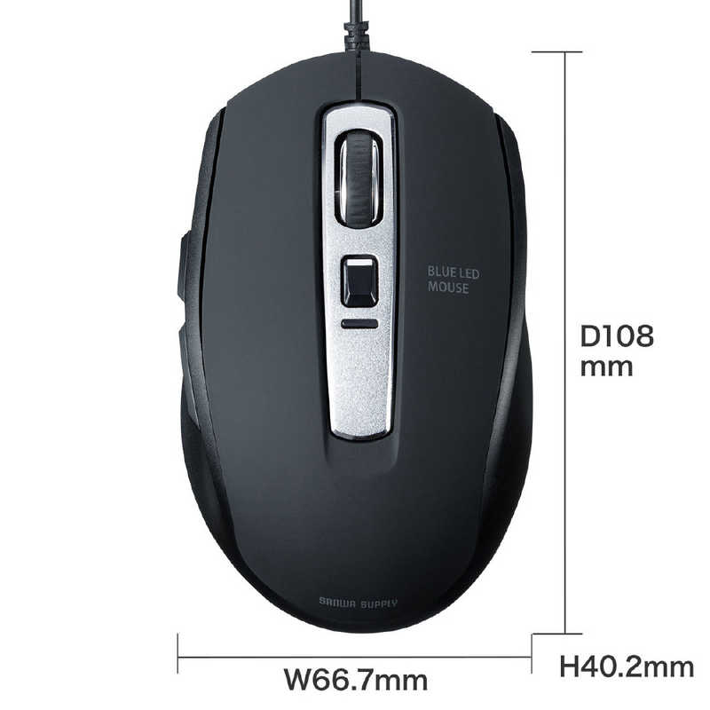 サンワサプライ Sanwa Supply 静音有線ブルーLEDマウス(5ボタン) ブラック MA-BL163BK