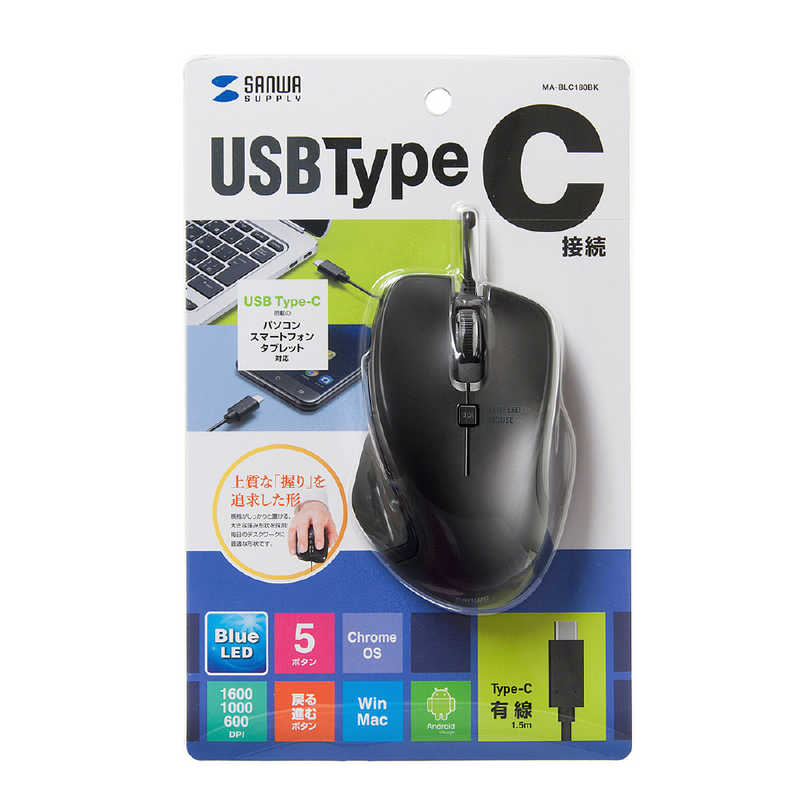 サンワサプライ Sanwa Supply 有線Type-CブルーLEDマウス(5ボタン) MA-BLC180BK