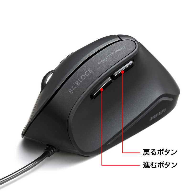 サンワサプライ Sanwa Supply 抗菌静音有線エルゴノミクスマウス MA-ERGK9