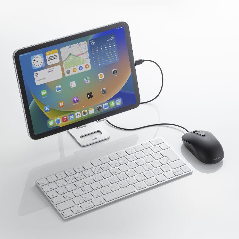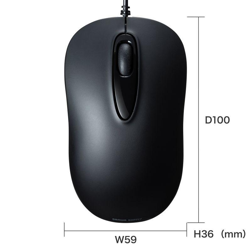 対称形で使いやすい、シンプルな有線マウスです。