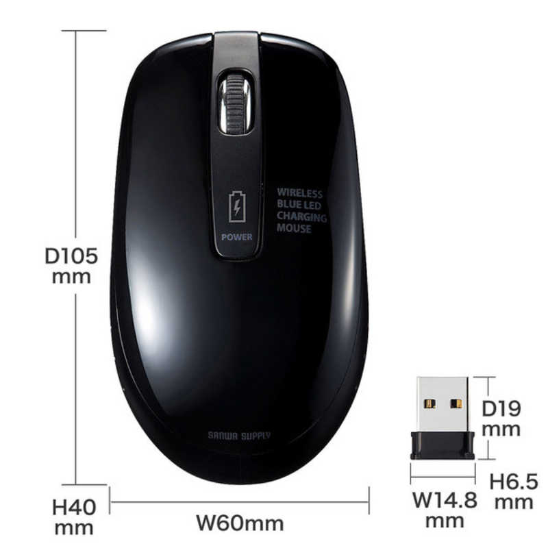 サンワサプライ Sanwa Supply 充電式ワイヤレスブルーLEDマウス ブラック MA-WBL118BK