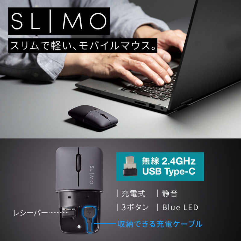 サンワサプライ Sanwa Supply 静音ワイヤレスブルーLEDマウス(充電式・Type-C) SLIMO ブラック MA-WCBS310BK