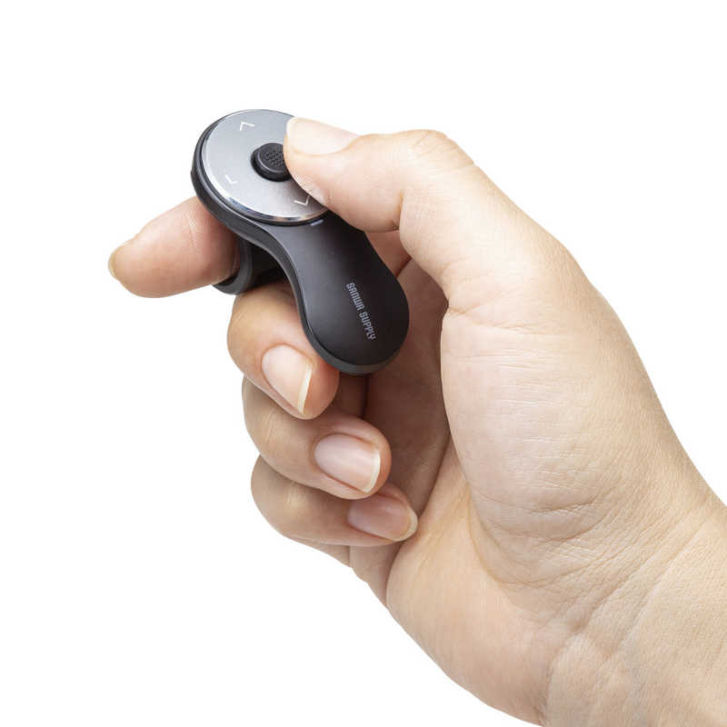指に装着して操作するので、ソファやベッドに寝転がりながら簡単にパソコンを操作することができます。