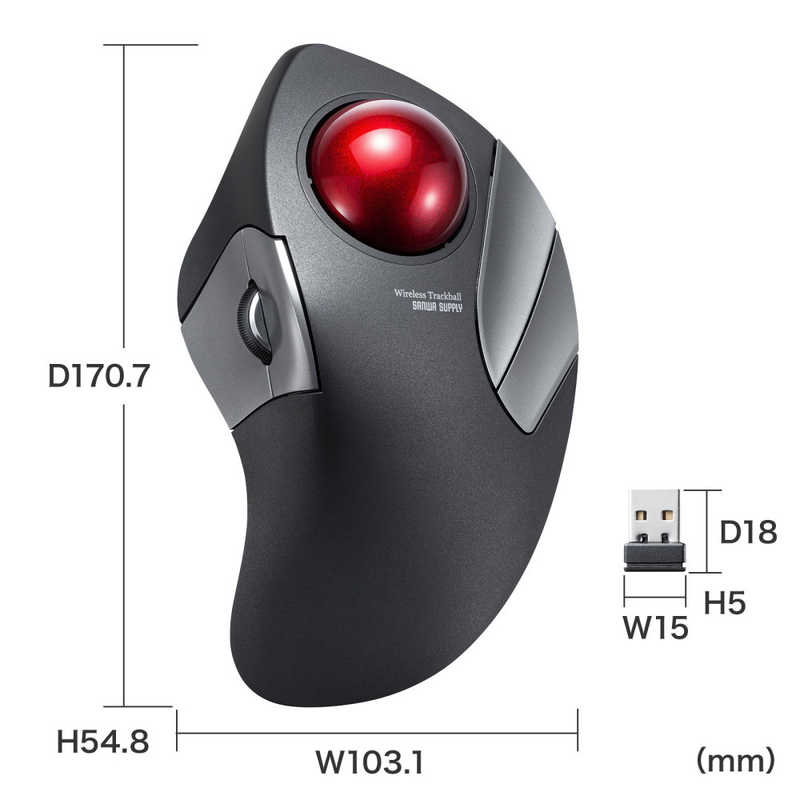 サンワサプライ Sanwa Supply ワイヤレストラックボール(静音・5ボタン・人差し指/中指操作タイプ) MA-WTB182BK