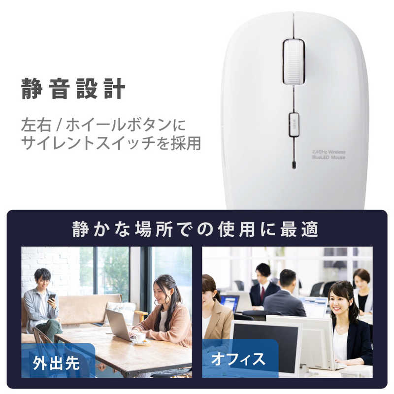 エレコム ELECOM 抗菌ワイヤレス静音BlueLEDマウス(5ボタン) ホワイト M-BL21DBSKWH