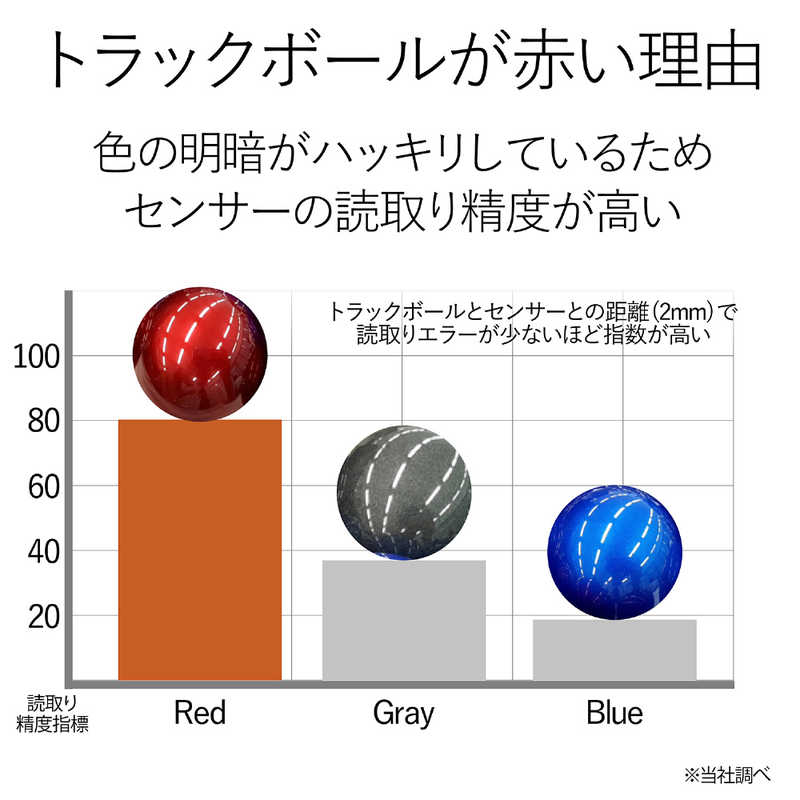 ■支持球に直径2.5mmの大型人工ルビーを採用し、表面が滑らかなもののみを厳選した最高級品質の支持球を用いることで、操球感が格段に向上しています。また、支持球が大型であることにより、支持球が手あかなどのゴミに埋もれにくくなり、メンテナンス頻度が低減しています。