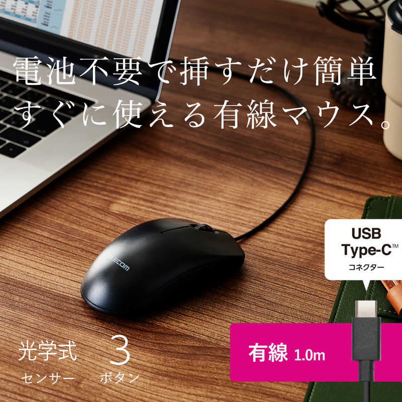 エレコム ELECOM USB Type-C(TM)有線光学式マウス[3ボタン/Lサイズ] M-LE10URCBK